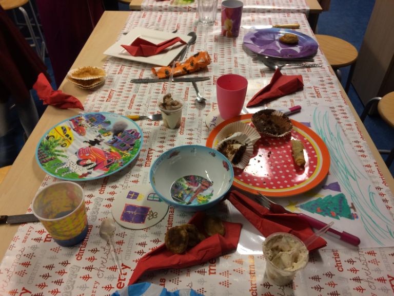Bij de kerstviering staat, geheel volgens de katholieke traditie, het kerstverhaal en samen zijn en zingen centraal. Voor de viering vormen alle kinderen van de school samen een kerstkoor. Het koor staat onder leiding van de vakleerkracht muziek. Na het samen zingen voor de ouders hebben de kinderen een kerstdiner in de eigen klas.